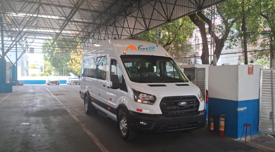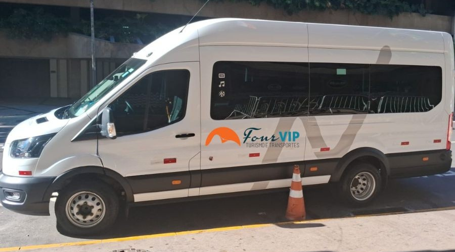 A VAN 15 Lugares da Four VIP Transportes é perfeita para grupos menores, oferecendo conforto, ar-condicionado e espaço para bagagens. Ideal para excursões e transfer de até 15 pessoas.